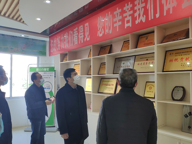 2月21日,福建輕紡黨組成員、副總經(jīng)理鄭書雄、總經(jīng)理助理林孝幫、運(yùn)行部經(jīng)理黃建明一行到建甌水仙藥業(yè)檢查指導(dǎo)疫情防控、安全生產(chǎn)和復(fù)工復(fù)產(chǎn)工作。