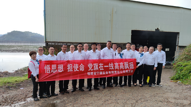 圖為黨員干部在霞浦分公司海帶鹽供應(yīng)一線合影
