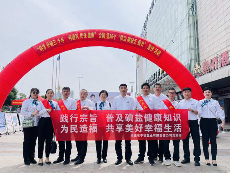 為深入開展學(xué)習(xí)貫徹習(xí)近平新時(shí)代中國特色社會(huì)主義思想主題教育,牢牢把握主題教育的目標(biāo)要求,在開展5.15“防治碘缺乏病日”宣傳活動(dòng)中,福鹽集團(tuán)黨委充分發(fā)揮各級(jí)黨組織、黨員干部的先鋒作用,積極履行社會(huì)責(zé)任,以“踐行宗旨為民造?!睘橹埸c(diǎn),以開展“我為群眾辦實(shí)事”實(shí)踐活動(dòng)、“黨旗在一線高高飄揚(yáng)”活動(dòng)為結(jié)合點(diǎn),以增強(qiáng)人民群眾獲得感、幸福感、安全感為著力點(diǎn),積極配合省衛(wèi)健委、工信廳、市場(chǎng)監(jiān)督管理局、疾控中心等部門,在寧德市聯(lián)信財(cái)富廣場(chǎng)開展以“科學(xué)補(bǔ)碘三十年,利國利民保健康”為主題的省級(jí)主會(huì)場(chǎng)宣傳活動(dòng),各地市分會(huì)場(chǎng)積極響應(yīng),現(xiàn)場(chǎng)熱鬧非凡。