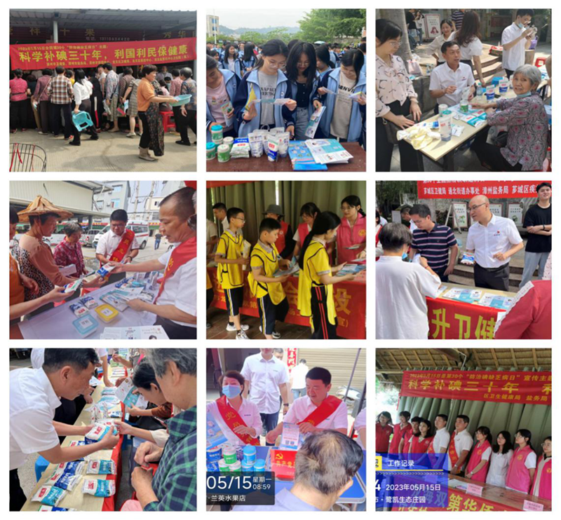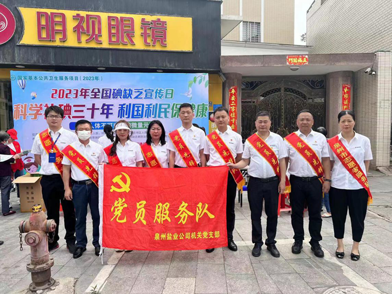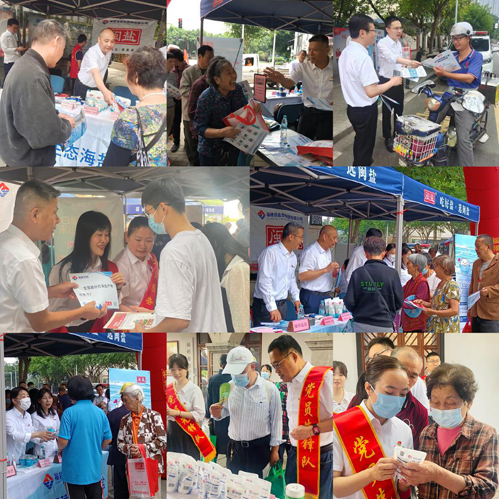 泉州鹽業(yè)公司黨總支積極配合各地衛(wèi)生健康委(局)、疾控中心、衛(wèi)生服務(wù)中心、市場(chǎng)監(jiān)管局等部門,組織黨員先鋒隊(duì)、志愿者分別在惠安縣涂寨鎮(zhèn)、石獅市靈秀鎮(zhèn)、南安市豐州鎮(zhèn)、安溪縣金谷鎮(zhèn)、永春縣儒林社區(qū)、豐澤區(qū)清源街道等地共同舉辦6場(chǎng)以“科學(xué)補(bǔ)碘三十年,利國利民保健康”為主題的現(xiàn)場(chǎng)宣傳活動(dòng)。