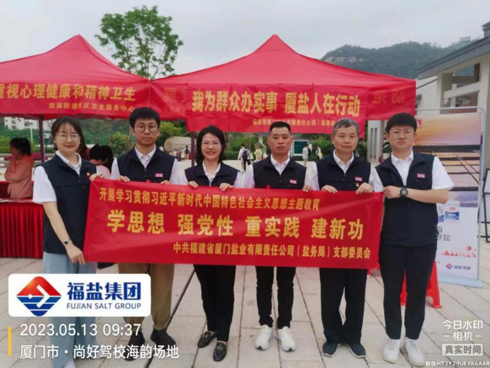 福州鹽業(yè)黨總支和福鹽集團(tuán)機(jī)關(guān)第一、第二黨支部黨建共建結(jié)對(duì),配合福建省衛(wèi)生健康委員會(huì)、福州市疾病預(yù)防控制中心、福州市衛(wèi)生健康委等單位,在福州市鰲峰光明港公園、福州中山紀(jì)念堂開展5.15“防治碘缺乏病日”、“全民營養(yǎng)宣傳周”宣傳活動(dòng)暨“我為群眾辦實(shí)事”主題黨日活動(dòng)。共發(fā)放宣傳資料1500余份,現(xiàn)場(chǎng)接受咨詢500余人,受眾人數(shù)1000余人。