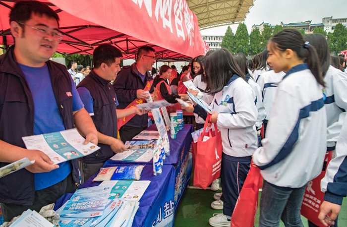 三明鹽業(yè)公司黨員服務(wù)隊(duì)深入學(xué)校開展進(jìn)校園宣傳活動(dòng),黨員服務(wù)隊(duì)耐心細(xì)致地解答師生提出的各種相關(guān)問題。通過小手拉大手的形式,鼓勵(lì)學(xué)生做一個(gè)健康知識(shí)的傳播者,將今天學(xué)到的健康知識(shí)分享給自己的家人、同學(xué)和朋友,讓更多的人了解碘以及碘缺乏病防治知識(shí)。
