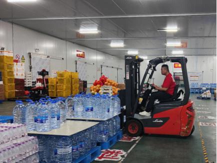 漳州融和倉儲人員進行牛奶飲品分揀入庫,保證“雙節(jié)”期間物料貯存充足