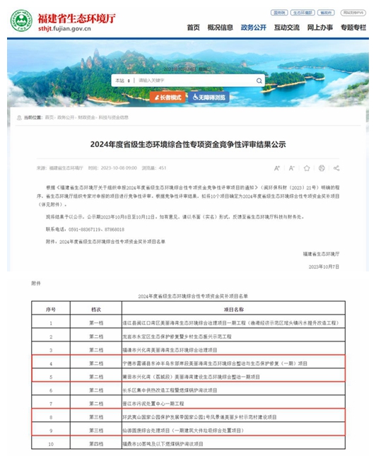 近日,福建省生態(tài)環(huán)境廳組織專家開展競爭性評審,對重點領域、重點區(qū)域重大示范項目擇優(yōu)給予獎補支持。根據(jù)省生態(tài)環(huán)境廳公示信息,最終有10個項目被確定為2024年度省級生態(tài)環(huán)境綜合性專項資金獎補項目,其中金皇環(huán)保協(xié)助地方申報的項目就有5個,占總獎補項目數(shù)的一半。