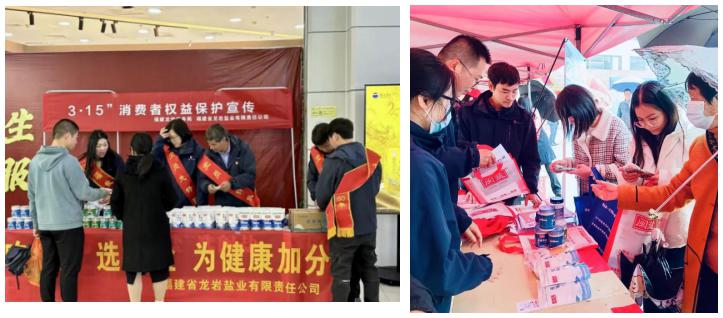 三、開展“3·15”活動,“閩鹽”黨建亮品牌。組建“黨員服務隊”“黨員先鋒隊”等24支隊伍,與各地方市場監(jiān)督管理局等相關單位聯(lián)合開展主題為“吃好鹽·選閩鹽,為健康加分”3·15消費者權益日現(xiàn)場宣傳活動,全系統(tǒng)累計舉辦活動60場,受眾人次約15700人。通過閩鹽有獎問答、引導參與抖音話題活動、講解鹽產(chǎn)品特點等形式,極大提高群眾參與的積極性,不斷推廣健康食鹽的消費理念,提升“閩鹽”黨建品牌服務力。