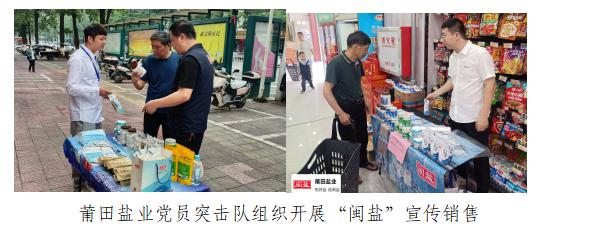 積極發(fā)揮黨建引領(lǐng),組織黨員突擊隊(duì)和服務(wù)隊(duì)在終端社區(qū)、商超等開(kāi)展“閩鹽”宣傳營(yíng)銷活動(dòng),向消費(fèi)者大力推廣“閩鹽”生態(tài)海鹽系列產(chǎn)品及漱口鹽、洗滌鹽等功能鹽產(chǎn)品,以飽滿的工作熱情助力“閩鹽”中高端產(chǎn)品的宣傳銷售。