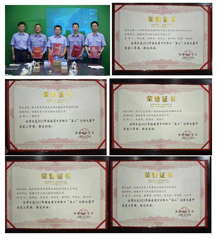 福建省百萬職工“五小”創(chuàng)新大賽作為福建省總工會(huì)主辦的一項(xiàng)重要賽事,以“小革新、小發(fā)明、小創(chuàng)造、小設(shè)計(jì)、小建議”為主要內(nèi)容,旨在激發(fā)廣大職工的創(chuàng)新熱情,挖掘和培養(yǎng)技術(shù)技能人才。由鄒運(yùn)通等申報(bào)的《一種制漿造紙堿回收苛化工段石灰系統(tǒng)的優(yōu)化設(shè)計(jì)》榮獲一等獎(jiǎng);由李素娟等申報(bào)的《生產(chǎn)工藝改進(jìn)-廢紙黏膠物控制酶的應(yīng)用》、由林思球等申報(bào)的《為提升連蒸產(chǎn)漿量的白液技術(shù)攻關(guān)項(xiàng)目》、由陸依標(biāo)等申報(bào)的《堿回收蒸發(fā)黑液皂化物綜合利用工藝研究》、由闞世龍申報(bào)的《解決制漿連蒸高壓喂料器填充率偏低問題》榮獲三等獎(jiǎng)。