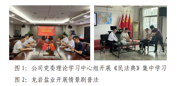 本次普法宣傳活動,公司黨委高度重視,把民法典學(xué)習作為黨委理論學(xué)習中心組的學(xué)習內(nèi)容和學(xué)法重點,全系統(tǒng)上下積極響應(yīng),認真組織開展學(xué)習、交流研討,采取線上線下相結(jié)合的多元化宣傳策略。龍巖鹽業(yè)組織開展“合同那點事”情景劇普法,由福建省司法廳、福建省國資委指導(dǎo)推動,福建電視臺綜合頻道“蒲公英在普法”欄目組現(xiàn)場拍攝錄制。各單位通過張貼民法典宣傳海報、發(fā)放民法典宣傳手冊等各種宣傳物料,依托互聯(lián)網(wǎng)平臺轉(zhuǎn)發(fā)、觀看民法典宣傳視頻等方式,不斷豐富職工學(xué)習內(nèi)容和路徑,全方位、多角度地增加普法趣味性,營造出學(xué)習、宣貫《民法典》的濃厚氛圍。