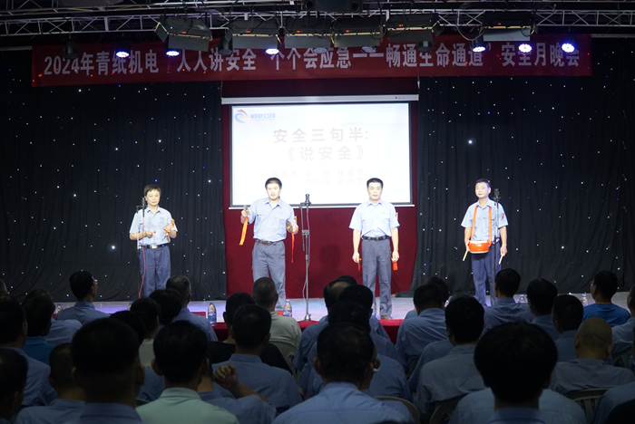 在全國(guó)第23個(gè)安全生產(chǎn)月之際,為進(jìn)一步落實(shí)安全責(zé)任,提高安全生產(chǎn)意識(shí),6月25日晚上,青山紙業(yè)機(jī)電公司舉辦了“人人講安全、個(gè)個(gè)會(huì)應(yīng)急——暢通生命通道”安全生產(chǎn)文藝晚會(huì)。福建輕紡安全檢查組、青山公司黨委副書記、總經(jīng)理余宗遠(yuǎn)等青山公司領(lǐng)導(dǎo)班子成員到場(chǎng)觀看演出。