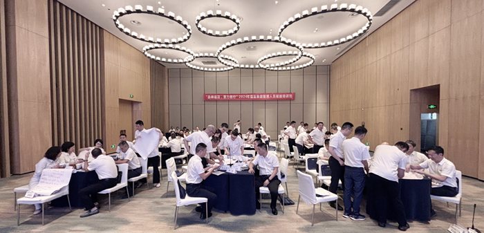 課堂上學員們?nèi)褙炞ⅰ⑸顚W深思、積極實踐,對所學知識吸收、輸出、反思。實戰(zhàn)演練環(huán)節(jié),各小組結合福鹽集團實際以及自身的認識和感受,通過深入研討、通力協(xié)作,碰撞思想火花,不斷完善方案意見,做好現(xiàn)場演繹,詮釋不一樣的精彩。導師對各組成果認真指導,學員們受益匪淺。“我在大家身上看到激情、智慧和協(xié)作,我相信福鹽品牌一定會做好、做強、做大。”導師劉靜華在課程結尾這樣評價道。